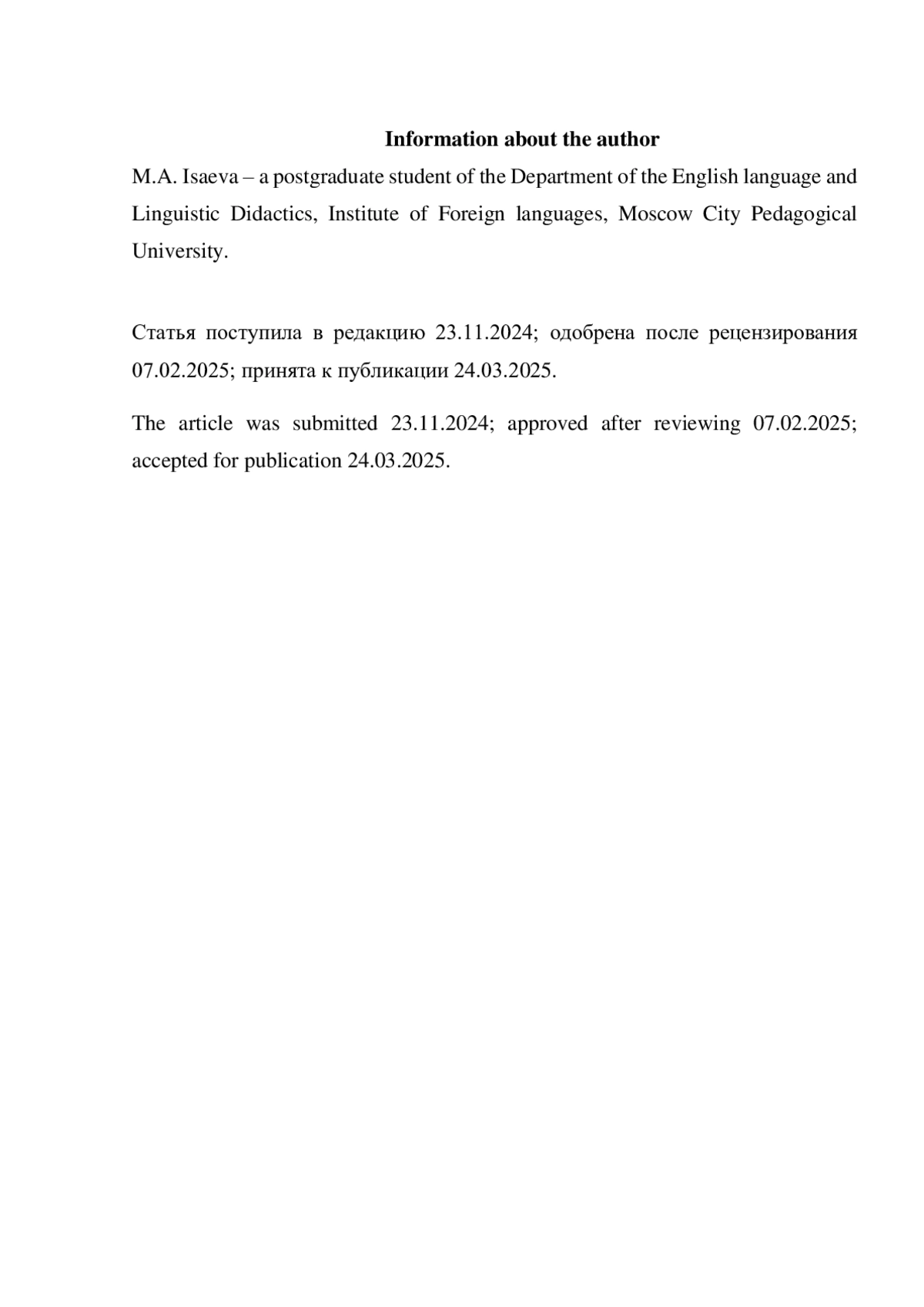 3. Байдикова Н.Л. Методика обучения английскому языку: учебник и практикум для вузов. М.: Юрайт, 2024. 439 с. EDN: XQVBFG