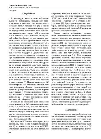 12. Padhan P., Pradhan P., Mohanty I. Hypercholesterolemic arthritis in a young female. Eur. J. Rheumatol. 2020; 7 (2): 96-97. DOI: 10.5152/eurjrheum.2019.19033