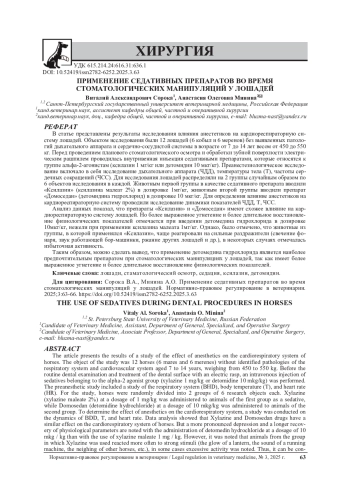 Статья: ПРИМЕНЕНИЕ СЕДАТИВНЫХ ПРЕПАРАТОВ ВО ВРЕМЯ СТОМАТОЛОГИЧЕСКИХ МАНИПУЛЯЦИЙ У ЛОШАДЕЙ (2025)