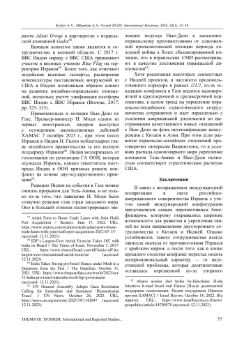 6. Микаелян А. А., Морозов В. М. Эволюция израильско-китайских и израильско-индийских отношений. Москва: МГИМО-Университет, 2023. EDN: JCIGAN