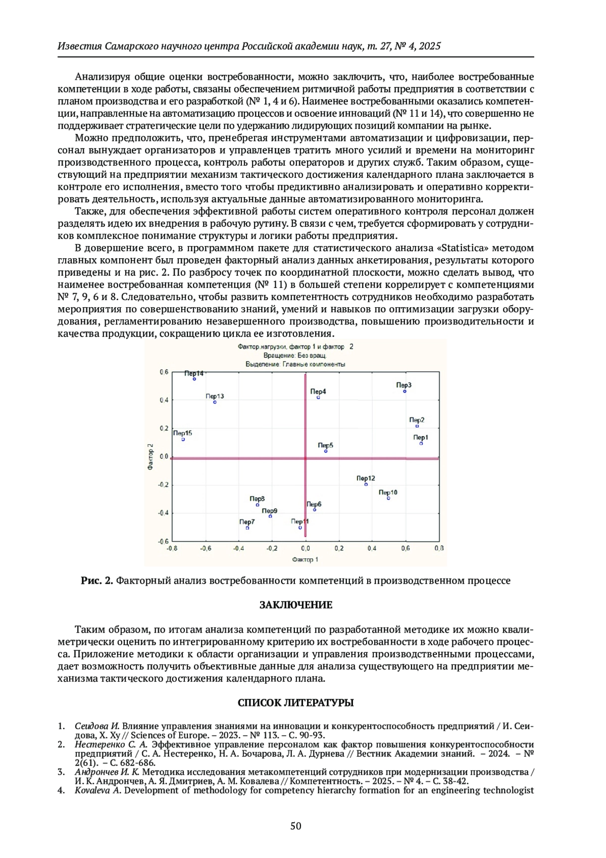 3. Андрончев И. К. Методика исследования метакомпетенций сотрудников при модернизации производства / И. К. Андрончев, А. Я. Дмитриев, А. М. Ковалева // Компетентность. - 2025. - № 4. - С. 38-42. EDN: KTCRHK