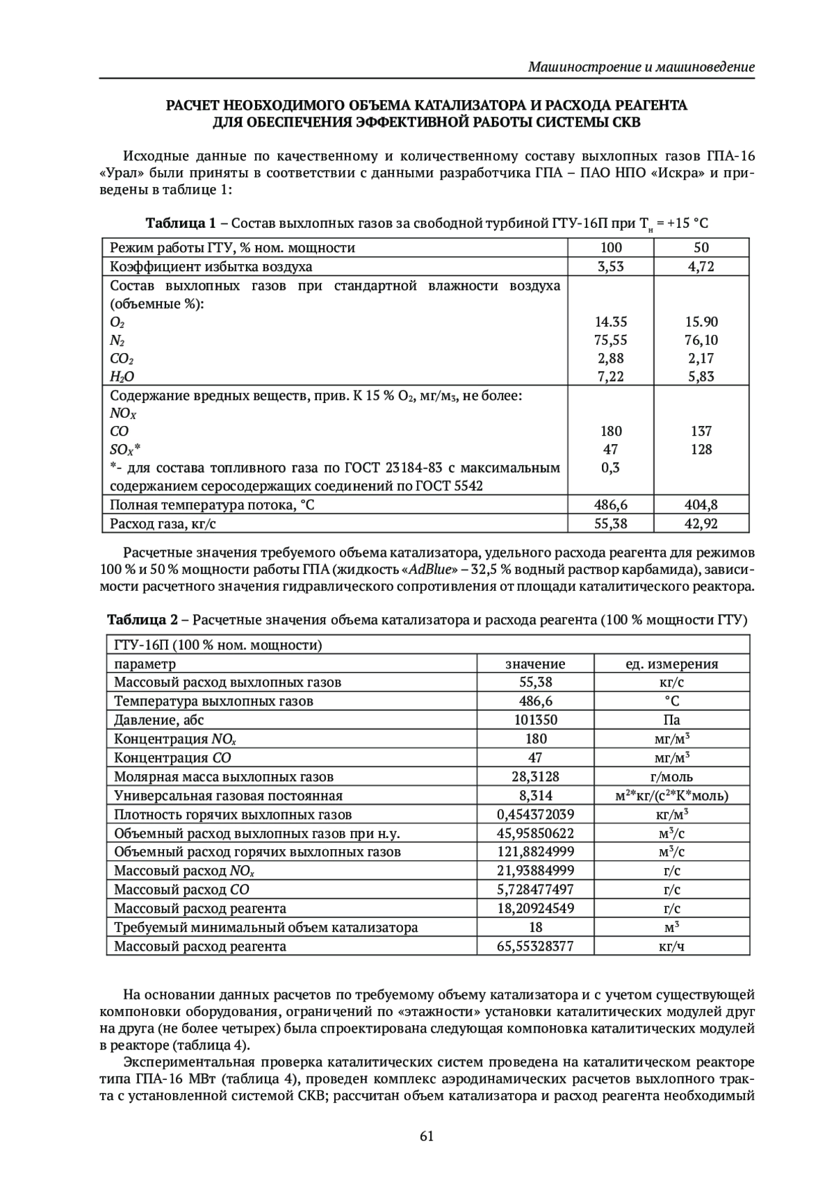 В статье приводятся результаты внедрения системы селективного каталитического восстановления в транспорте газа при эксплуатации газоперекачивающих агрегатов. Проведен расчет необходимого объема катализатора и расхода реагента для обеспечения эффективной работы системы селективного каталитического восстановления. Описаны основные элементы системы селективного каталитического восстановления. Проведена Оценка эффективности снижения негативного воздействия на атмосферный воздух с использованием системы селективного каталитического восстановления.