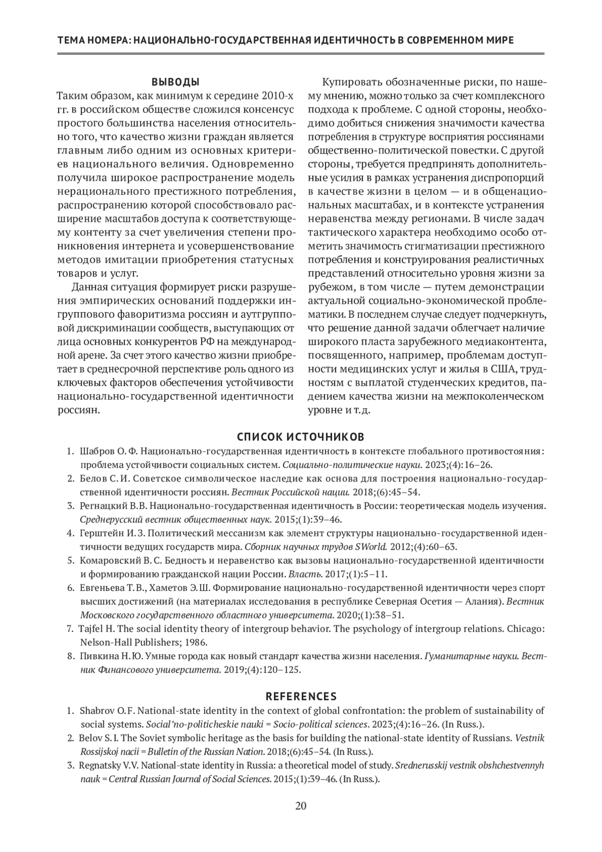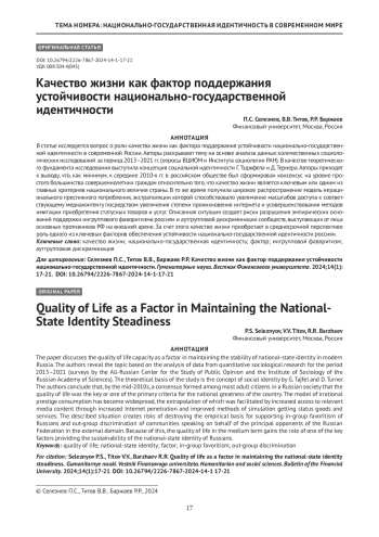 Статья: Качество жизни как фактор поддержания устойчивости национально-государственной идентичности (2024)