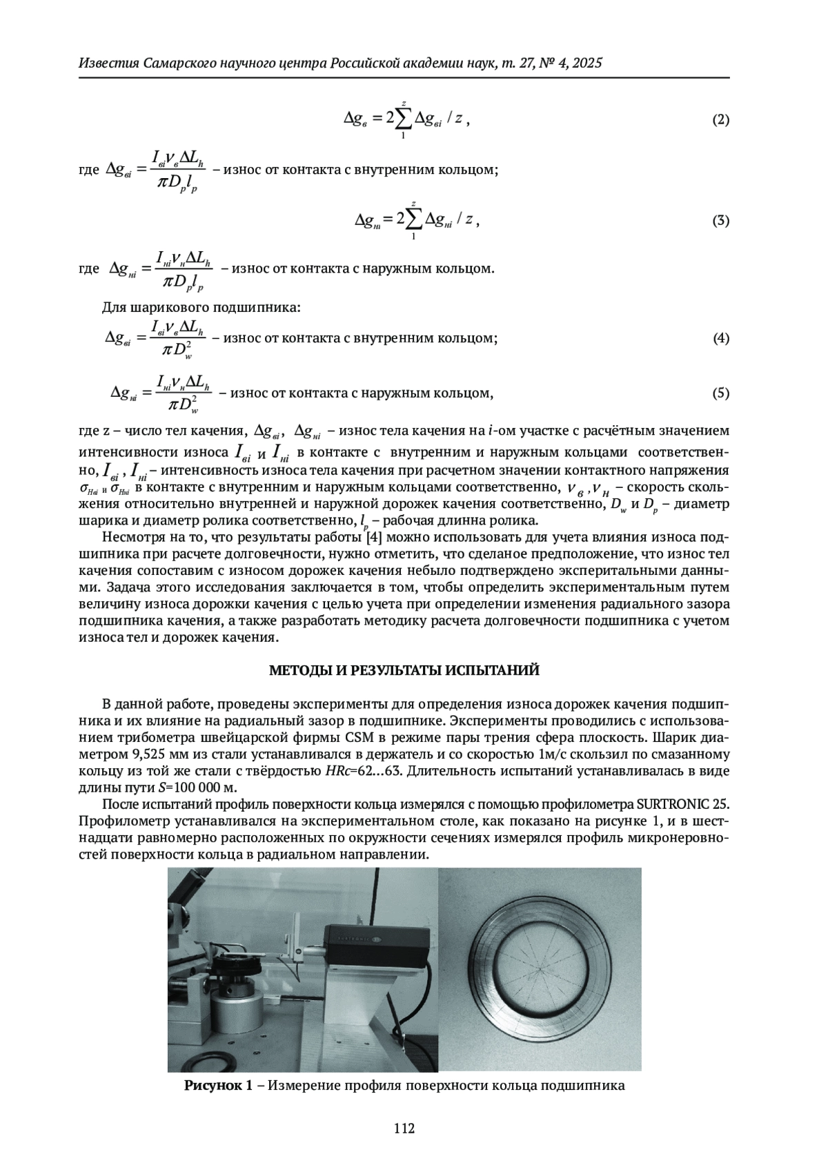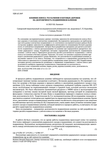 В процессе работы подшипников качения наблюдается проскальзывание тел качения, что обуславливает наличие трения скольжения в контакте с беговыми дорожками [1]. Это приводит к износу тел качения и беговых дорожек в процессе работы и увеличению радиального зазора в подшипнике [2,3].