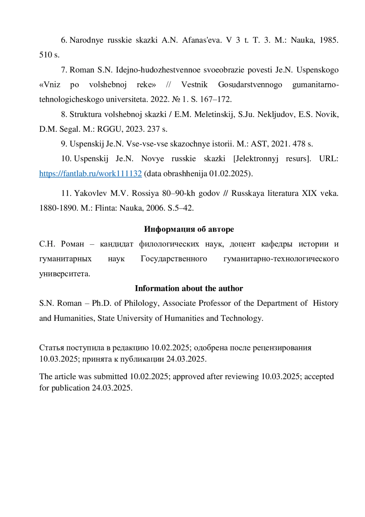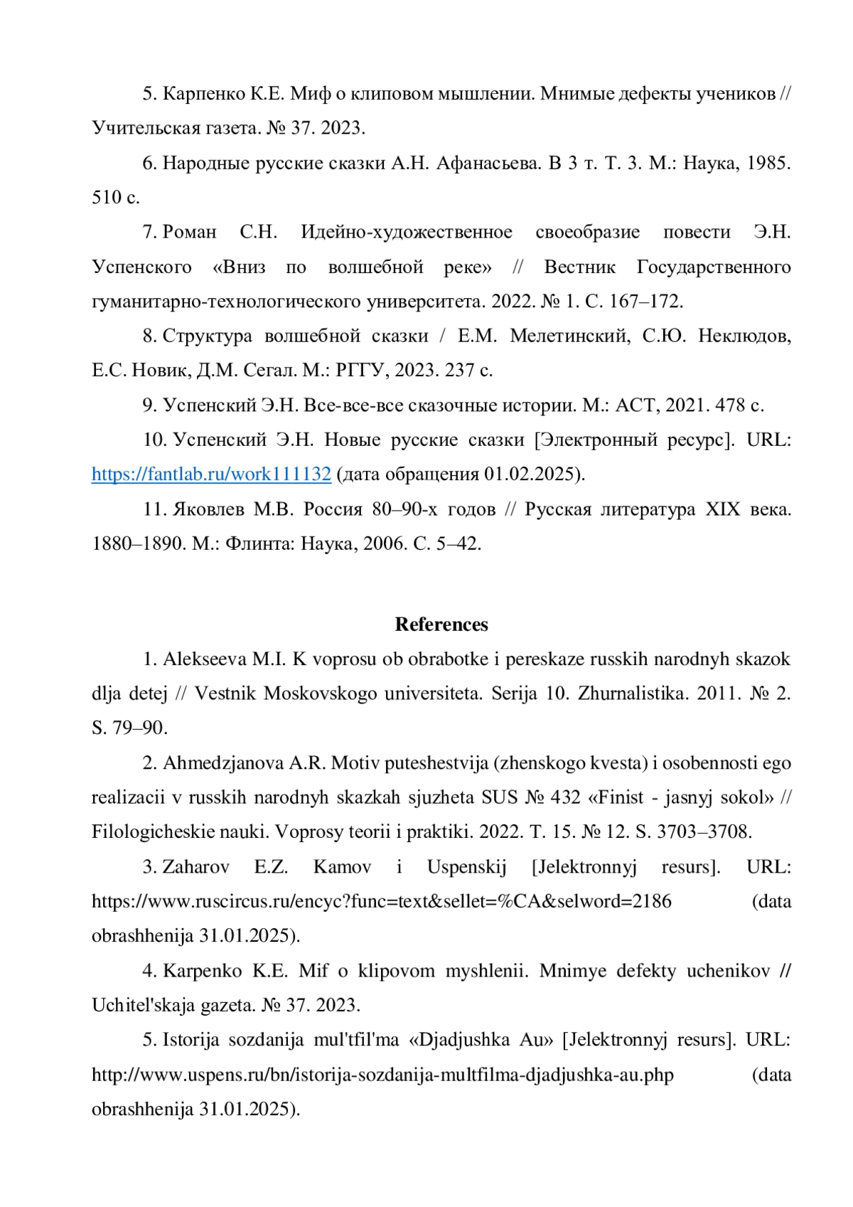 10. Успенский Э.Н. Новые русские сказки [Электронный ресурс]. URL: https://fantlab.ru/work111132(датаобращения01.02.2025).