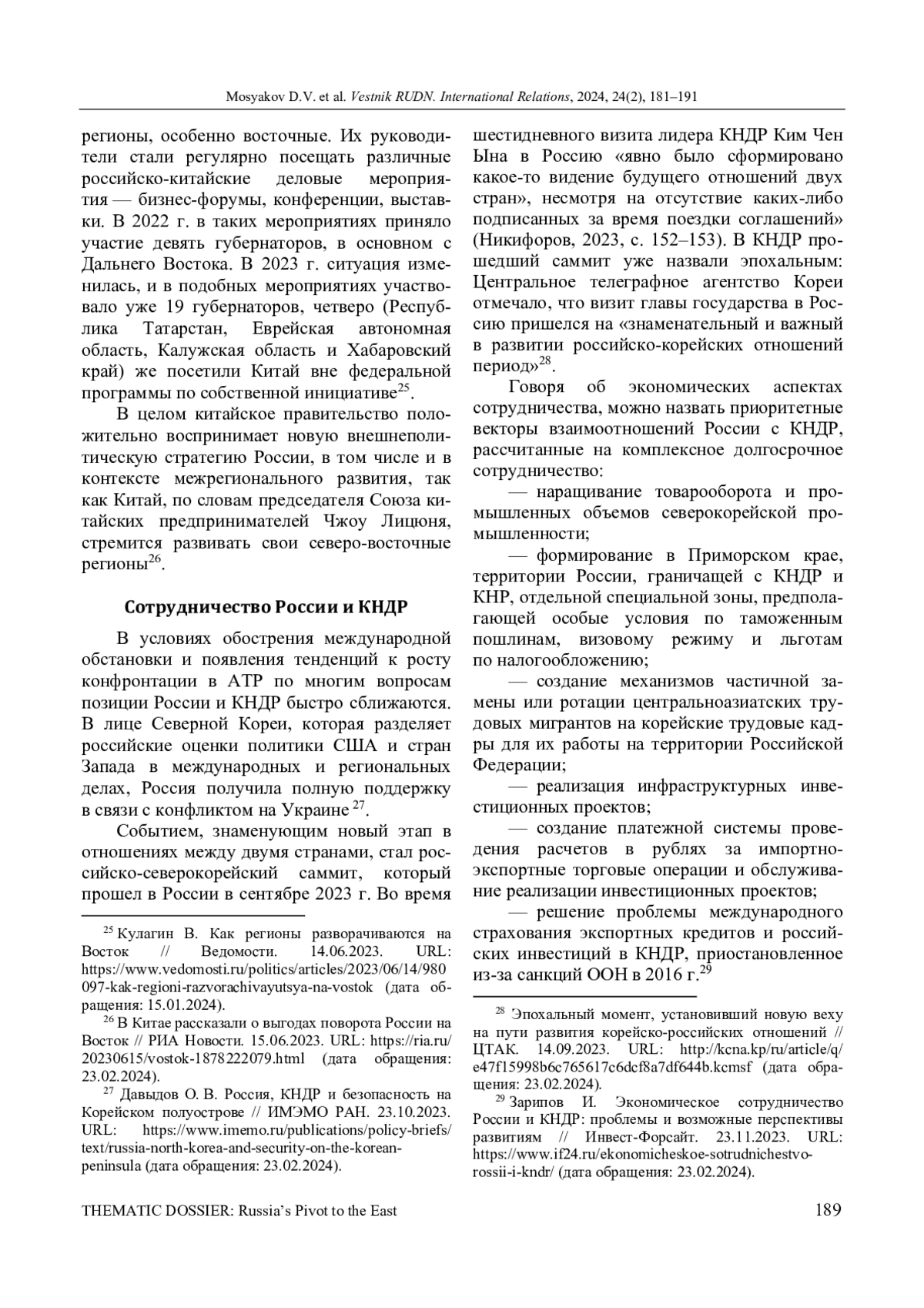 13. Никифоров А. С. Отношения России и КНДР после начала СВО // Корееведение в России: направление и развитие. 2023. Т. 4, № 4. С. 149-157. EDN: HKXMYZ