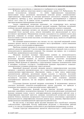 В статье рассмотрены основные понятия внутренней трудовой миграции населения страны, определены функции и последствия внутренней миграции населения. Авторами предложена система показателей внутренней трудовой миграции населения, характеризующая ее объемы, направления, интенсивность и влияние на социально-экономическое развитие российских регионов.