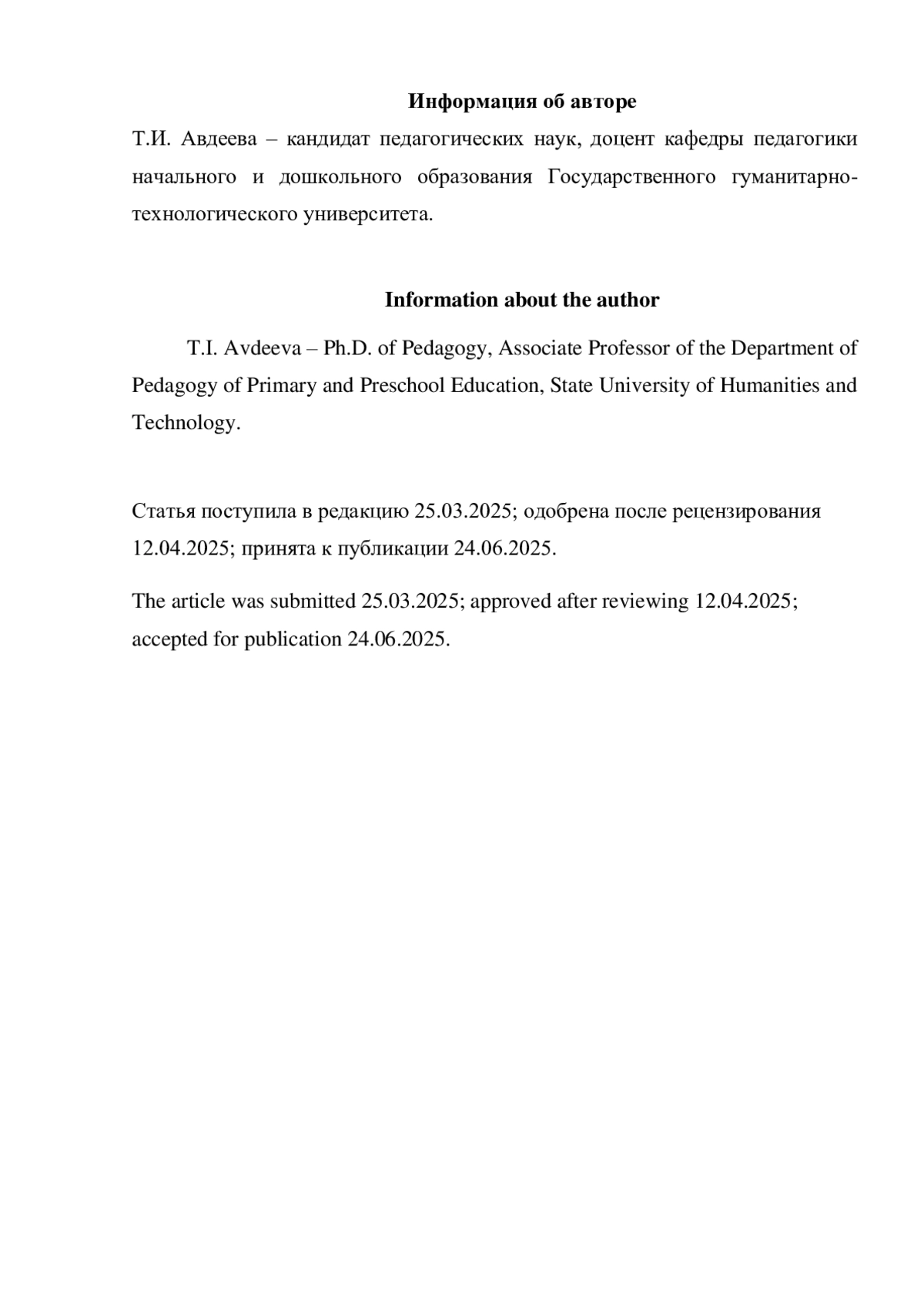 Автор (ы): АВДЕЕВА ТАТЬЯНА ИВАНОВНА