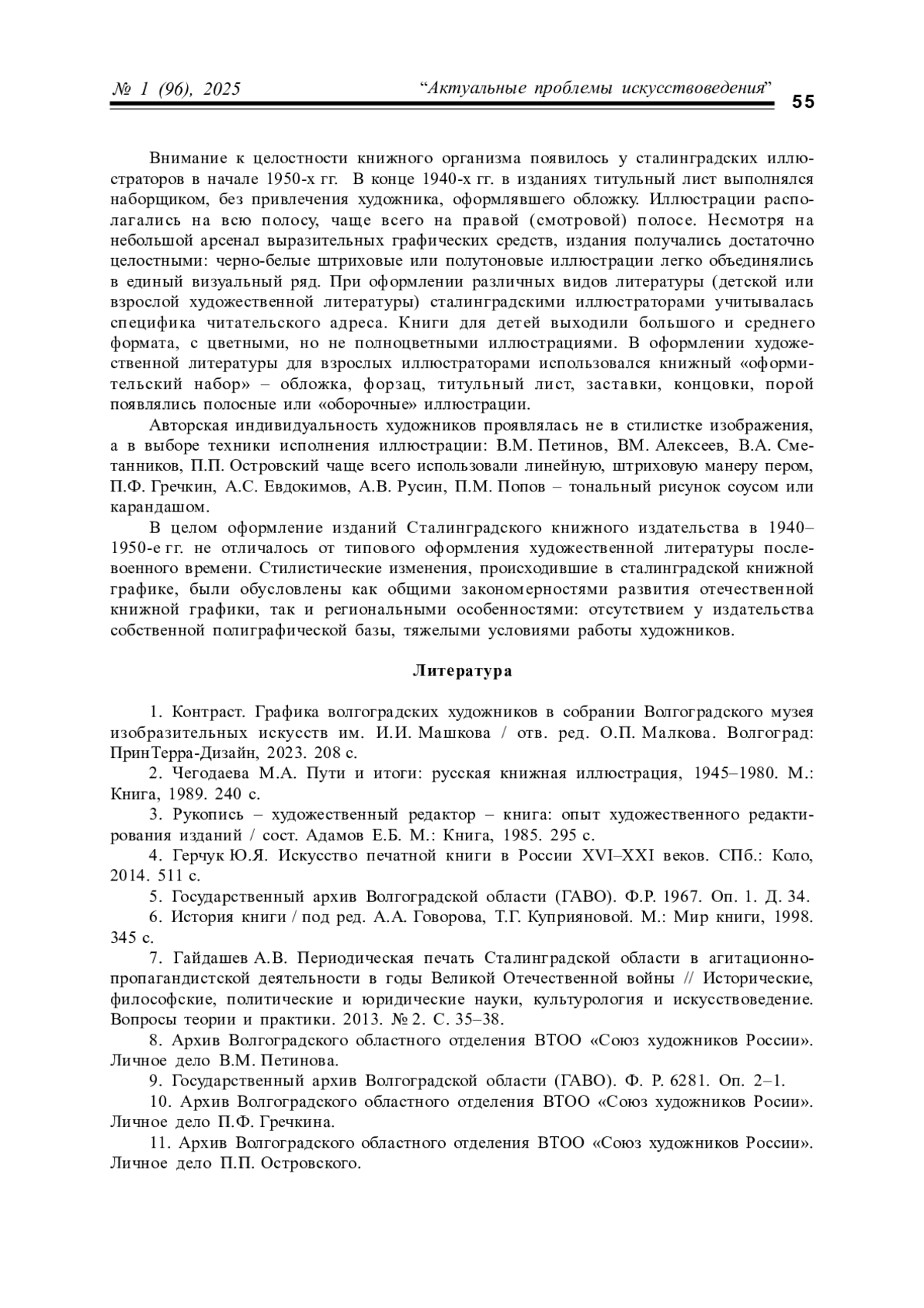 1. Контраст. Графика волгоградских художников в собрании Волгоградского музея изобразительных искусств им. И.И. Машкова / отв. ред. О.П. Малкова. Волгоград: ПринТерра-Дизайн, 2023. 208 с.