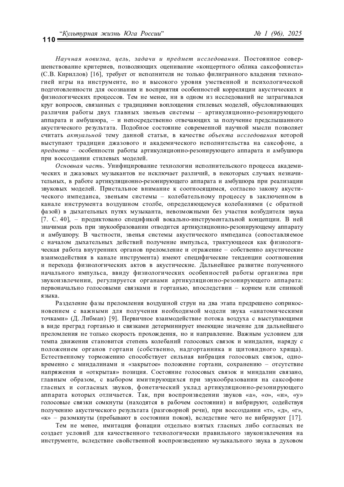 16. Кириллов С.В. Техника игры на саксофоне и проблемы интерпретации оригинальных произведений: дис. … канд. искусствоведения. М., 2010. 166 с. EDN: QEYHVH