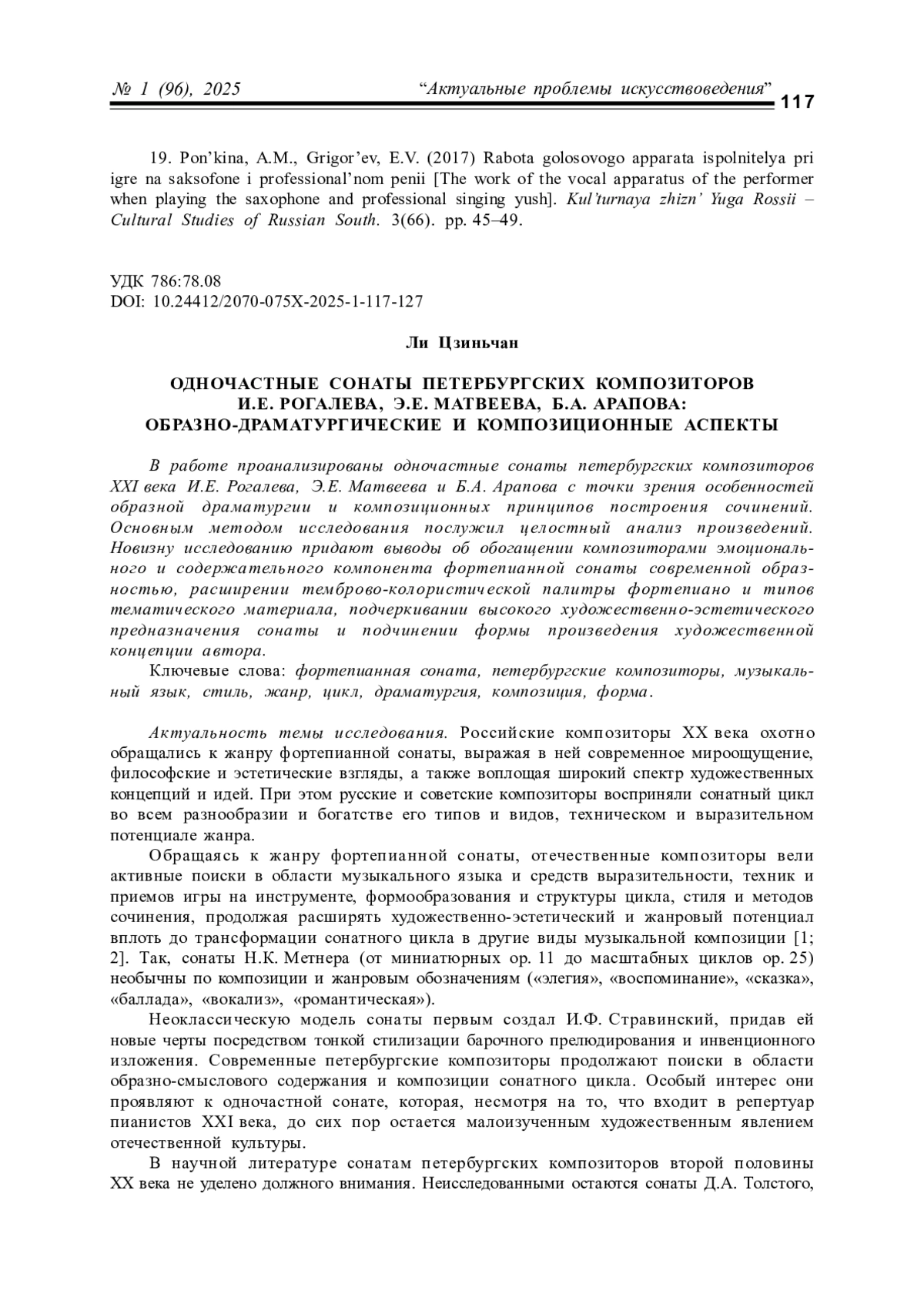 1. Понькина А.М. Эволюция академической музыки для саксофона второй половины XIX - начала XXI века. М.: ФИЛИНЪ, 2020. 240 с. EDN: KEEGDP