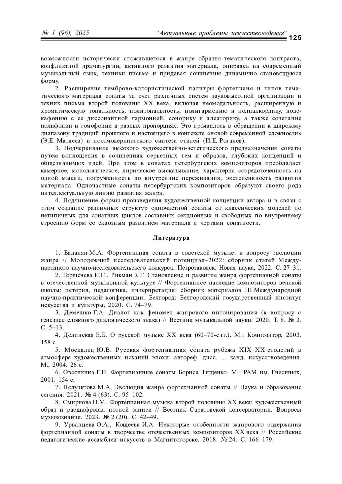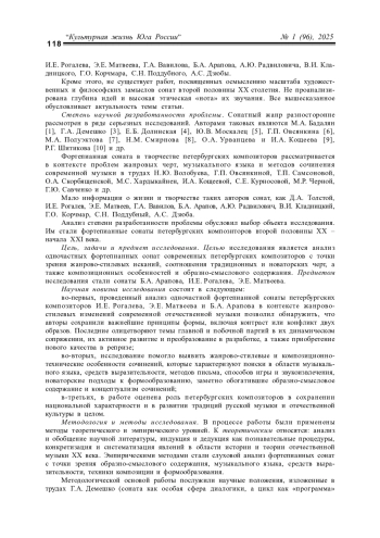 Статья: ОДНОЧАСТНЫЕ СОНАТЫ ПЕТЕРБУРГСКИХ КОМПОЗИТОРОВ И. Е. РОГАЛЕВА, Э. Е. МАТВЕЕВА, Б. А. АРАПОВА: ОБРАЗНО-ДРАМАТУРГИЧЕСКИЕ И КОМПОЗИЦИОННЫЕ АСПЕКТЫ (2025)