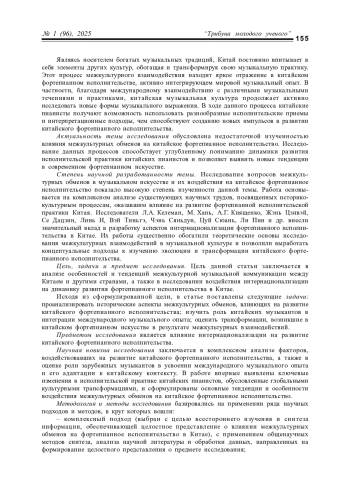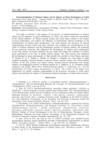 Статья: ИНТЕРНАЦИОНАЛИЗАЦИЯ МУЗЫКАЛЬНОЙ КУЛЬТУРЫ И ЕЕ ВЛИЯНИЕ НА ФОРТЕПИАННОЕ ИСПОЛНИТЕЛЬСТВО В КИТАЕ (2025)