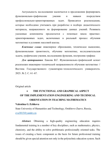 Актуальность исследования заключается в предложении формировать функционально-графические умения и навыки посредством профессионально-ориентированных задач.