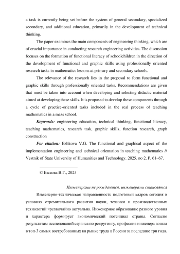 1. Алексеевнина А.К. К вопросам непрерывного образования инженерных кадров: необходимость формирования функциональной грамотности школьников на уроках физики и математики // Инженерное образование. 2022. № 32. С. 7-16.