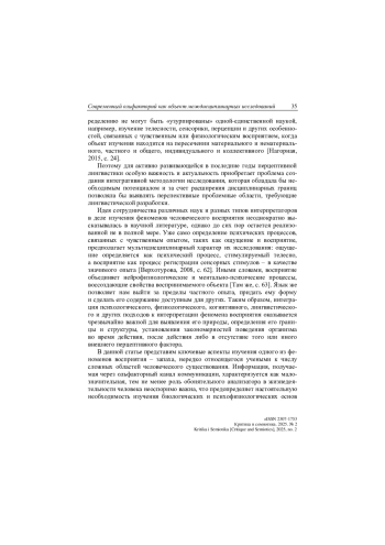 Рассматриваются ключевые подходы к изучению феномена обонятельного восприятия, зависящие от позиции интерпретатора. Несмотря на неодинаковые «точки отсчета» различных областей знаний, изучающих обонятельную перцепцию, имеется значительная доля пересечений, позволяющих объяснить сложную природу обонятельных впечатлений и особенности перцептивнокогнитивной деятельности в целом. Автором представлен аналитический обзор научных работ, посвященных изучению запаха как биологического и семиотического феномена, изложены различные филологические подходы к исследованию одоро-ольфакторного фрагмента словаря, определены перспективные проблемные области интерпретации обонятельной перцепции, требующие лингвистической разработки.