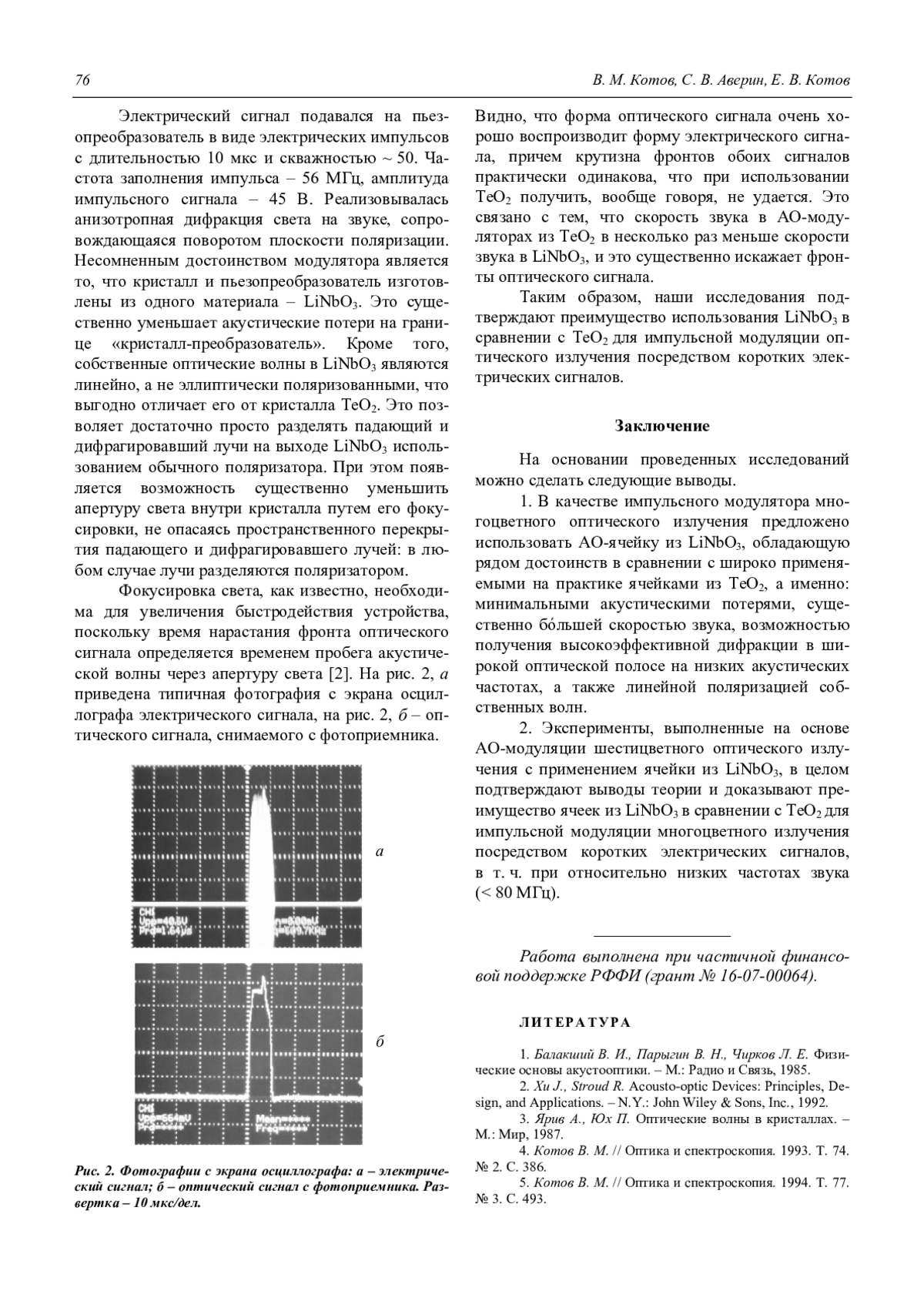 Котов В. М., Аверин С. В., Котов Е. В. Акустооптический модулятор многоцветного излучения на основе ниобата лития 74