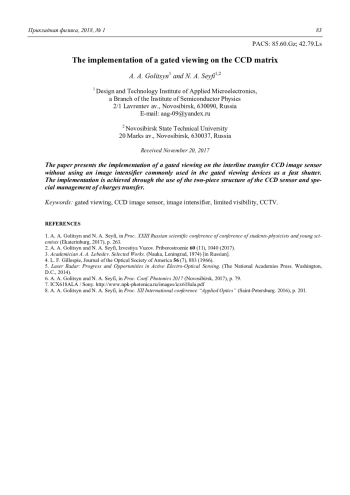 A. A. Golitsyn and N. A. Seyfi The implementation of a gated viewing on the CCD matrix 78
