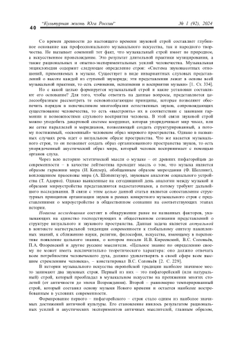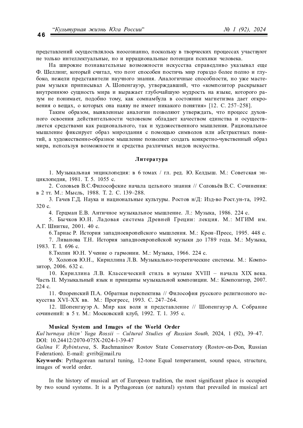 РЫБИНЦЕВА Г. В. МУЗЫКАЛЬНЫЙ СТРОЙ И ОБРАЗЫ МИРОУСТРОЙСТВА // КУЛЬТУРНАЯ ЖИЗНЬ ЮГА РОССИИ. 2024. № 1 (92)