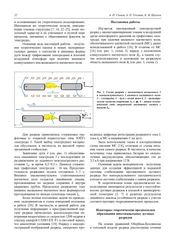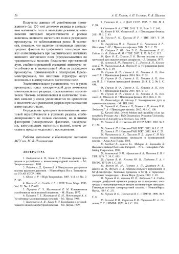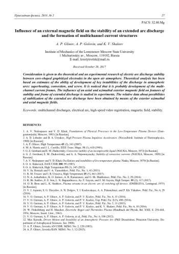 Глинов А. П., Головин А. П., Шалеев К. В. Влияние внешнего магнитного поля на устойчивость протяженного дугового разряда и формирование многоканальных токовых структур 21