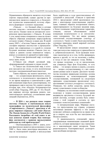 3. Zhao Tingyang. Tian xia de dang dai xing: shi jie zhi xu de shi jian yu xiang xiang. Běijīng: Zhong xin chu ban she [Современность “Тянься”: практики и образы мирового порядка. Пекин: CITIC Press Group], 2016. (На китайском языке).