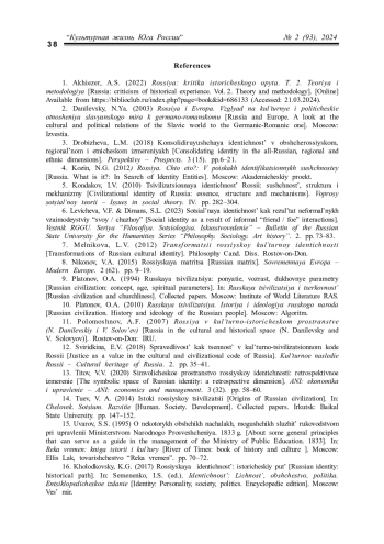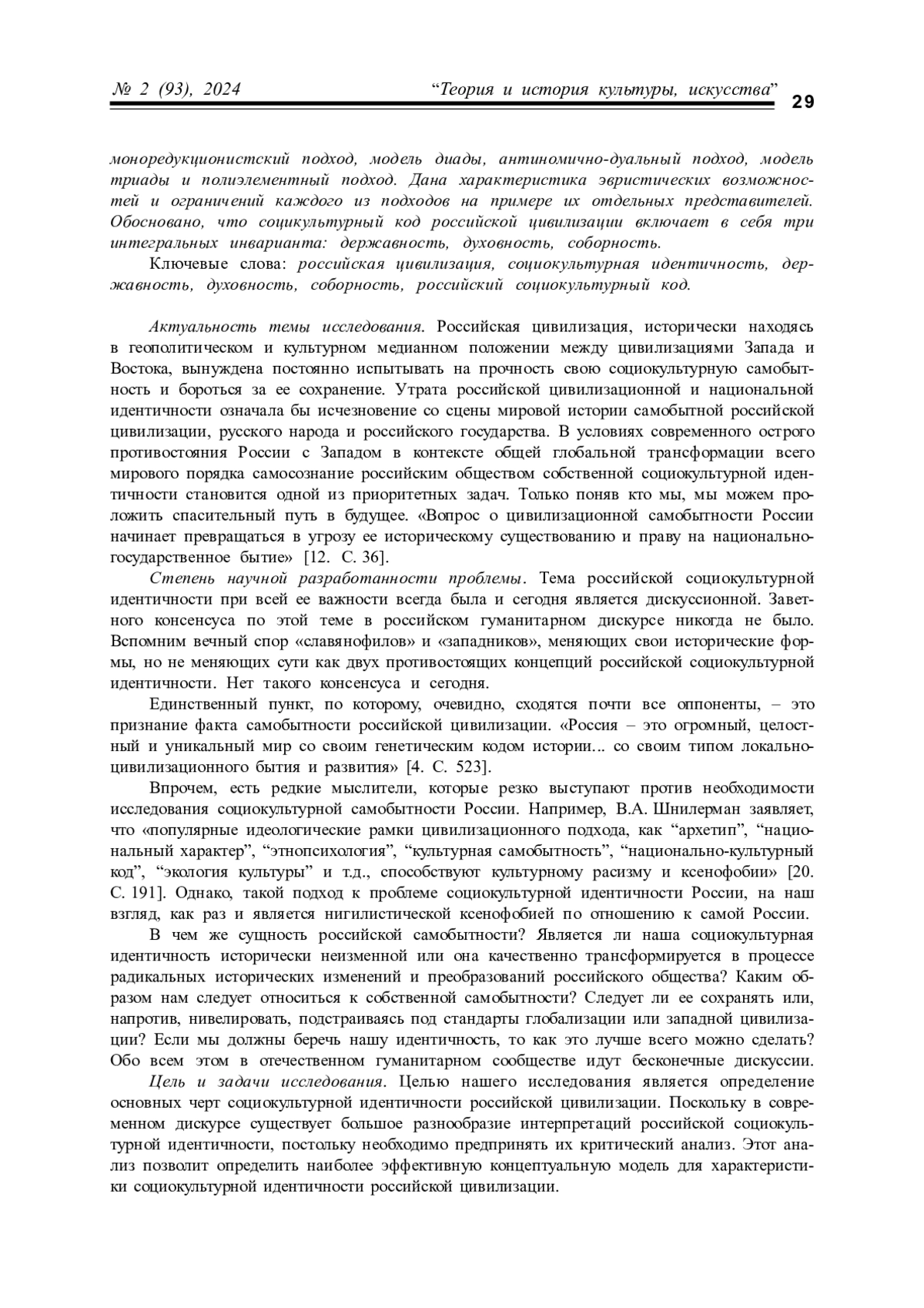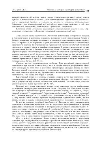 Статья: ПРОБЛЕМА СОЦИОКУЛЬТУРНОЙ ИДЕНТИЧНОСТИ РОССИЙСКОЙ ЦИВИЛИЗАЦИИ (2024)