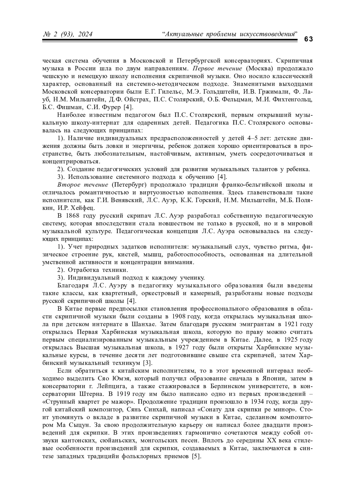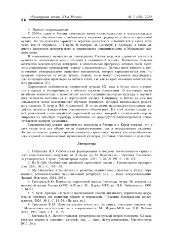 1. Габриэлян Н.З. Особенности формирования и подъема отечественного скрипичного педагогического искусства от Л. Ауэра до Ю. Янкелевича // Вестник Тамбовского университета. Серия: Гуманитарные науки. 2021. Т. 26. № 191. С. 116-122. EDN: AABBSY