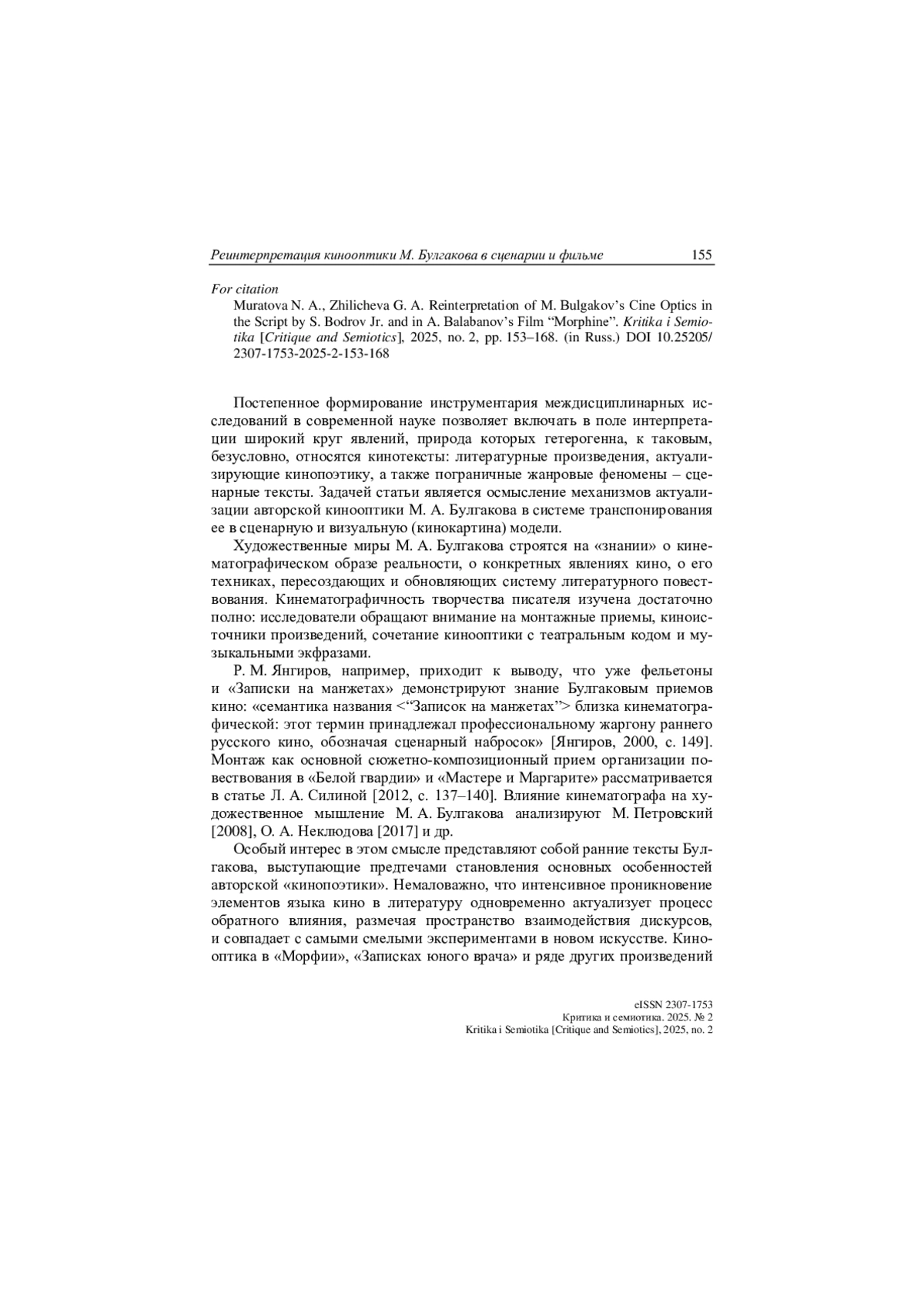 2. Кольцова Н. З., Неклюдова О. А. К вопросу о кинематографической технике в творчестве М. Булгакова: от “Дьяволиады” к “Мастеру и Маргарите” // Вестник Бурят. гос. ун-та, 2015. Вып. 10 (1). С. 155-161.