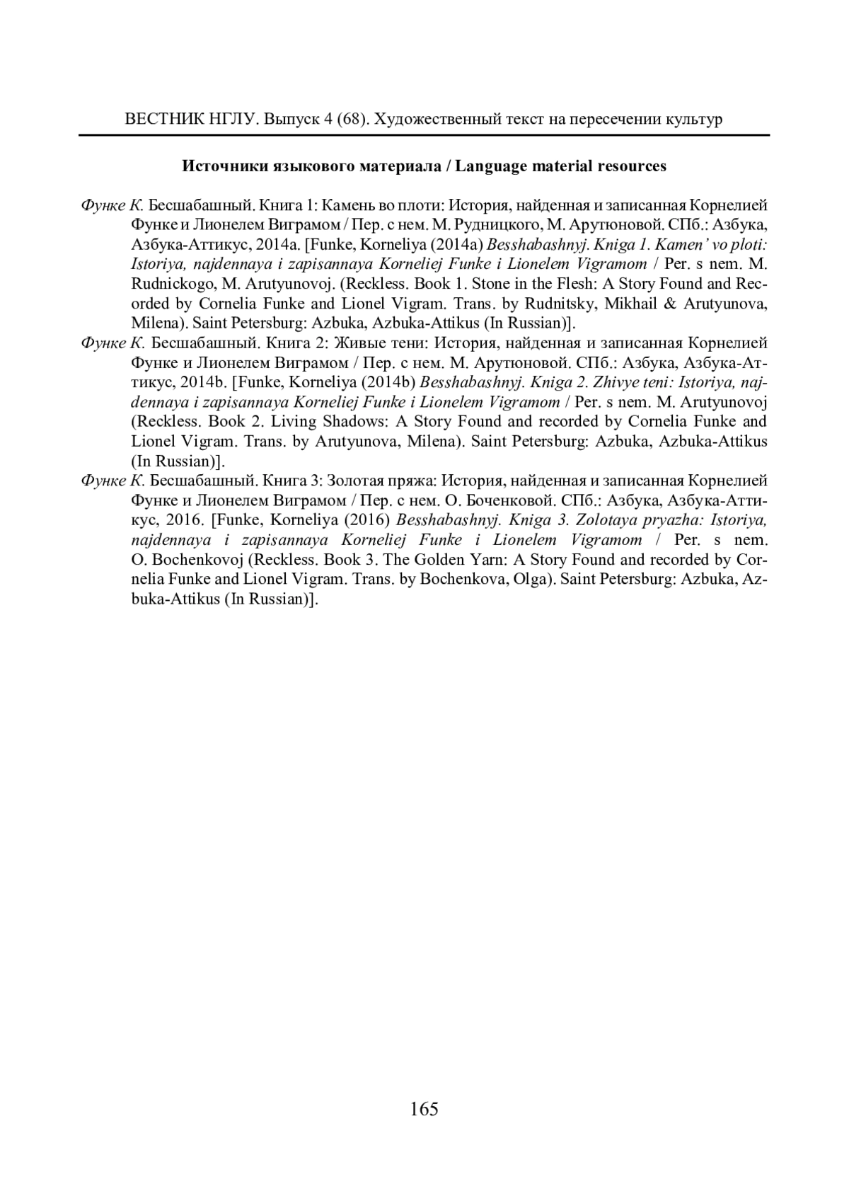 23. Функе К. Бесшабашный. Книга 1: Камень во плоти: История, найденная и записанная Корнелией Функе и Лионелем Виграмом / Пер. с нем. М. Рудницкого, М. Арутюновой. СПб.: Азбука, Азбука-Аттикус, 2014a.