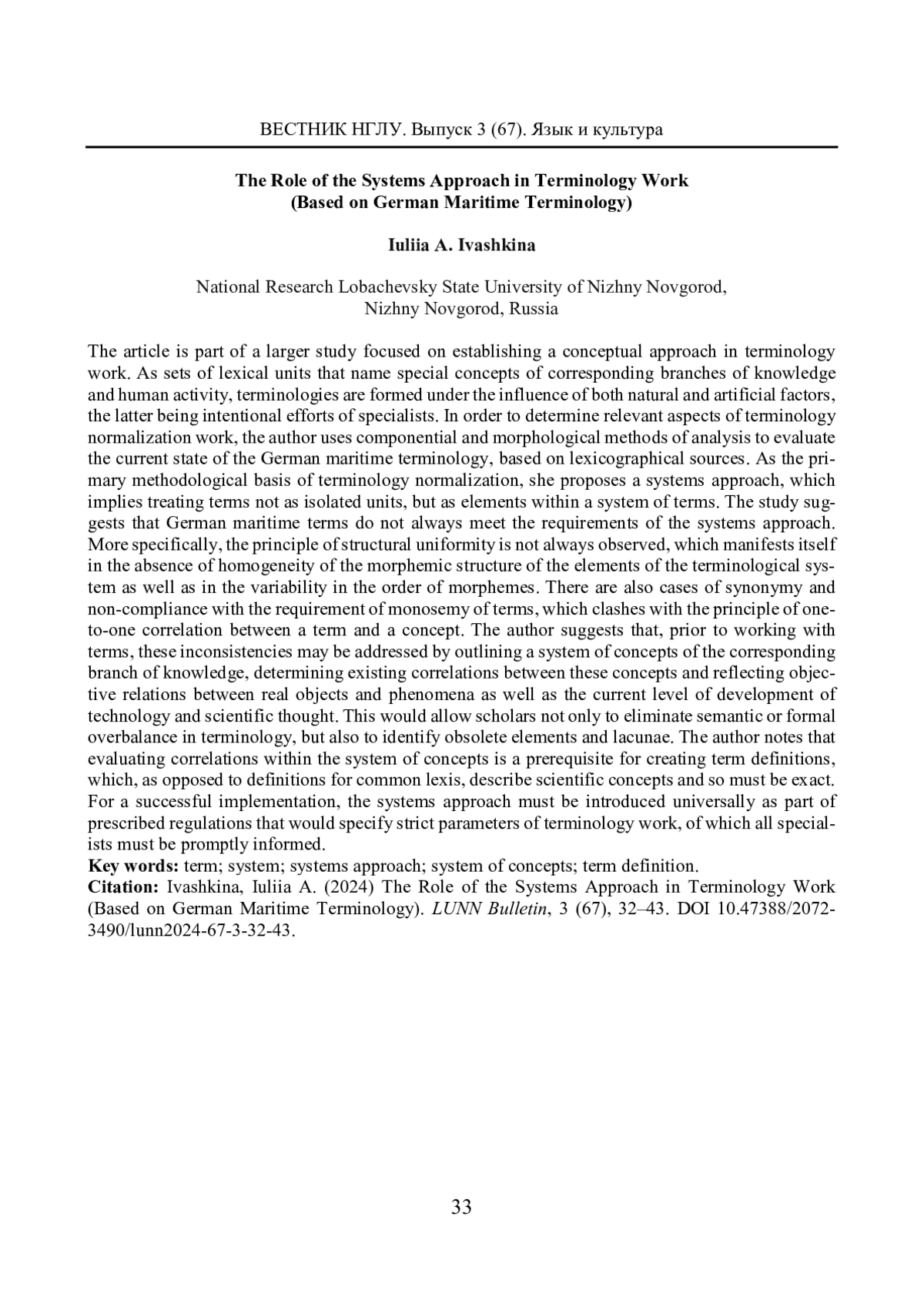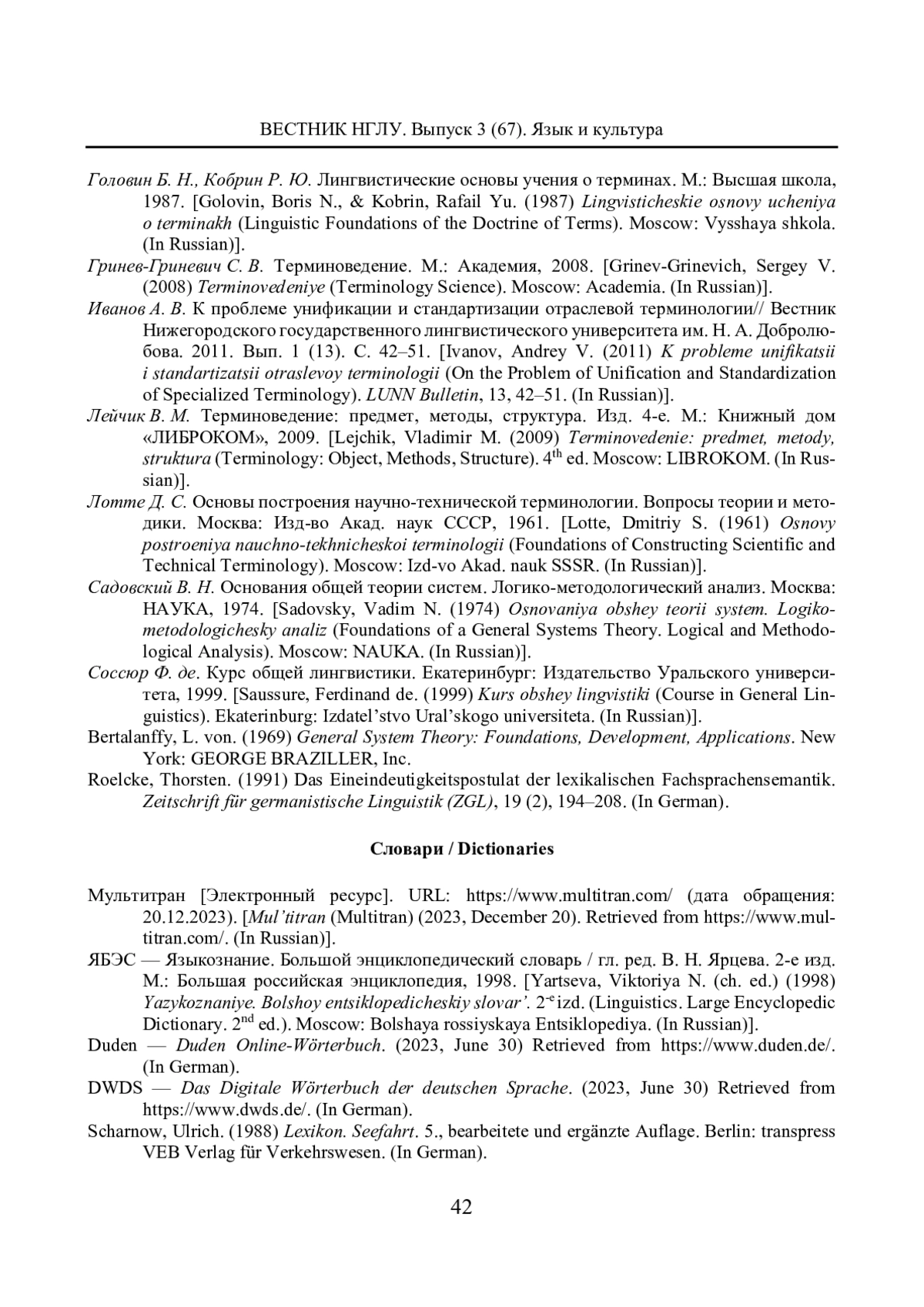 ИВАШКИНА Ю.А. К ВОПРОСУ О РОЛИ СИСТЕМНОГО ПОДХОДА ПРИ РАБОТЕ С ТЕРМИНАМИ (НА ПРИМЕРЕ МОРСКОЙ ТЕРМИНОЛОГИИ НЕМЕЦКОГО ЯЗЫКА) // ВЕСТНИК НИЖЕГОРОДСКОГО ГОСУДАРСТВЕННОГО ЛИНГВИСТИЧЕСКОГО УНИВЕРСИТЕТА ИМ. Н. А. ДОБРОЛЮБОВА. 2024. № 67