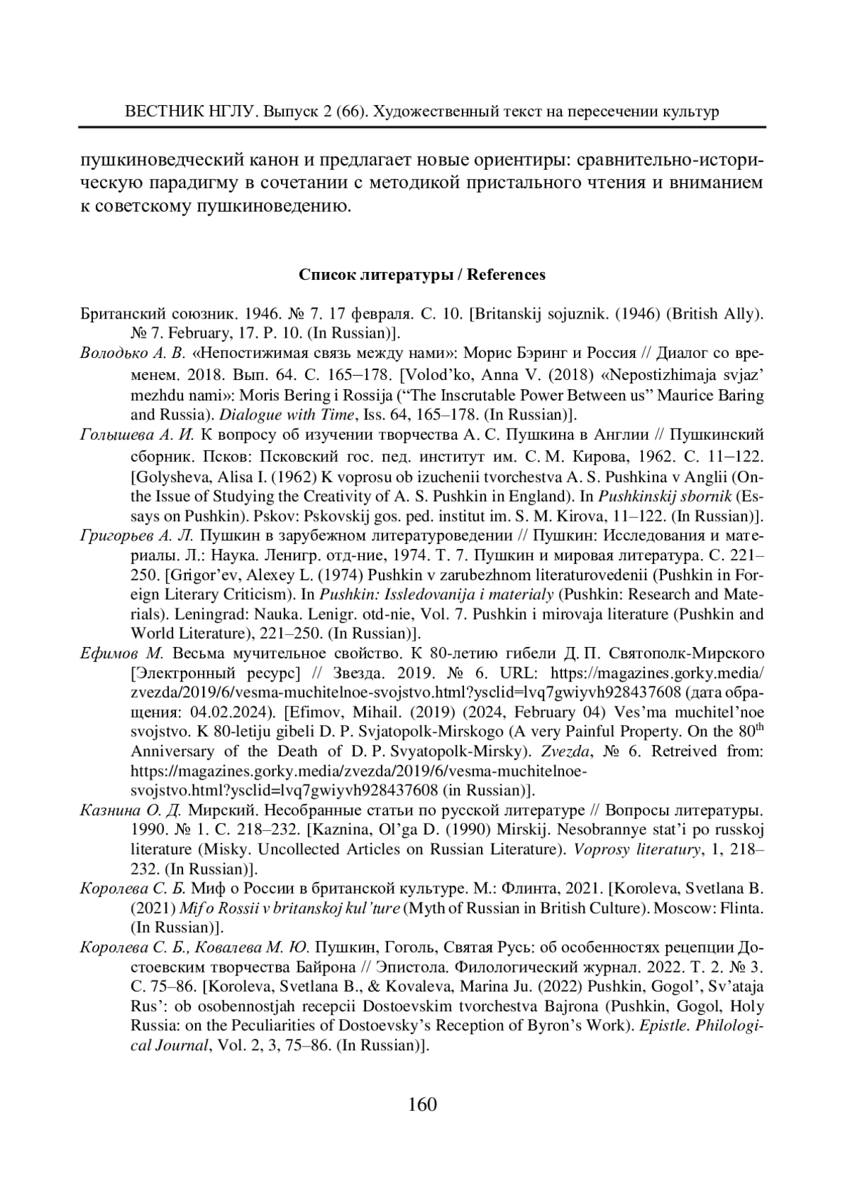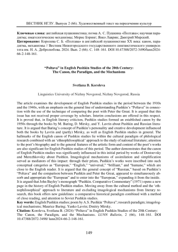 КОРОЛЕВА С. Б. "ПОЛТАВА" В АНГЛИЙСКОЙ ПУШКИНИСТИКЕ XX ВЕКА: КАНОН, ПАРАДИГМА, МЕХАНИЗМЫ // ВЕСТНИК НИЖЕГОРОДСКОГО ГОСУДАРСТВЕННОГО ЛИНГВИСТИЧЕСКОГО УНИВЕРСИТЕТА ИМ. Н. А. ДОБРОЛЮБОВА. 2024. № 66