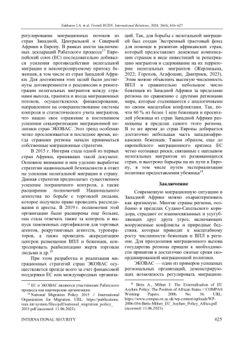 6. Жерлицына Н. А. Стратегия ЕС в отношении Центрально-Средиземноморского маршрута миграции и пострадавших транзитных государств Сахеля и Ливии // Геополитика и экогеодинамика регионов. 2022. Т. 8, № 3. С. 51-59. EDN: OIQFHE