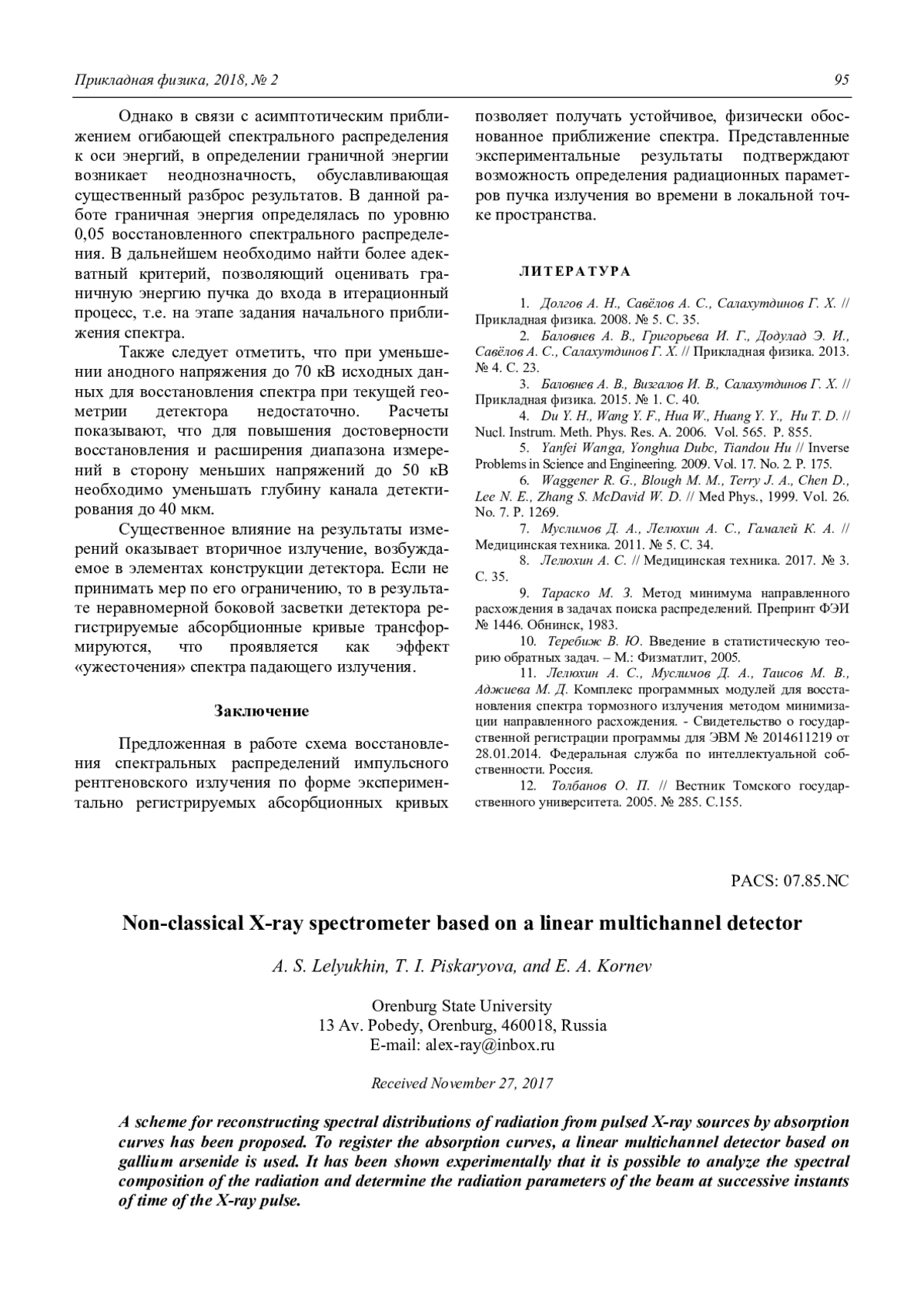 A. S. Lelyukhin, T. I. Piskaryova, and E. A. Kornev Non-classical X-ray spectrometer based on a linear multichannel detector 90