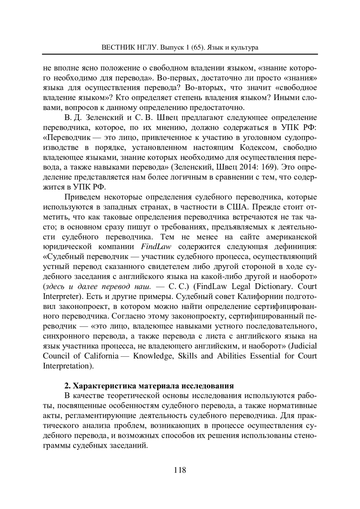 6. Зеленский В. Д., Швец С. В. Некоторые вопросы судебного перевода // Общество и право. 2014. № 2 (48). С. 166-169. EDN: SGTWKT