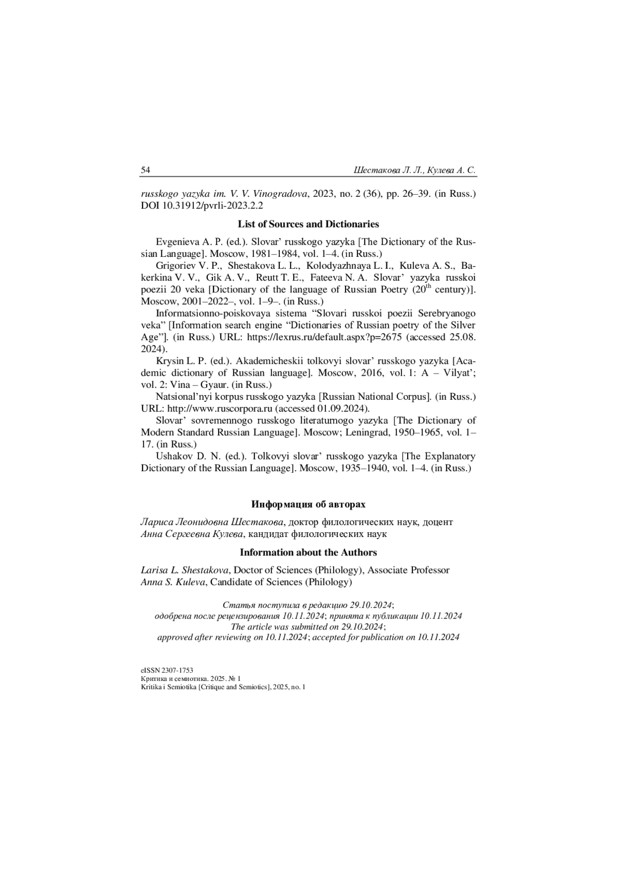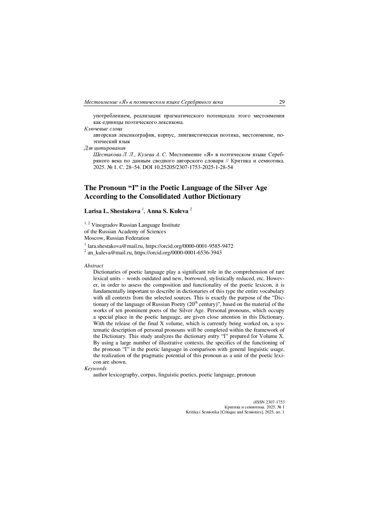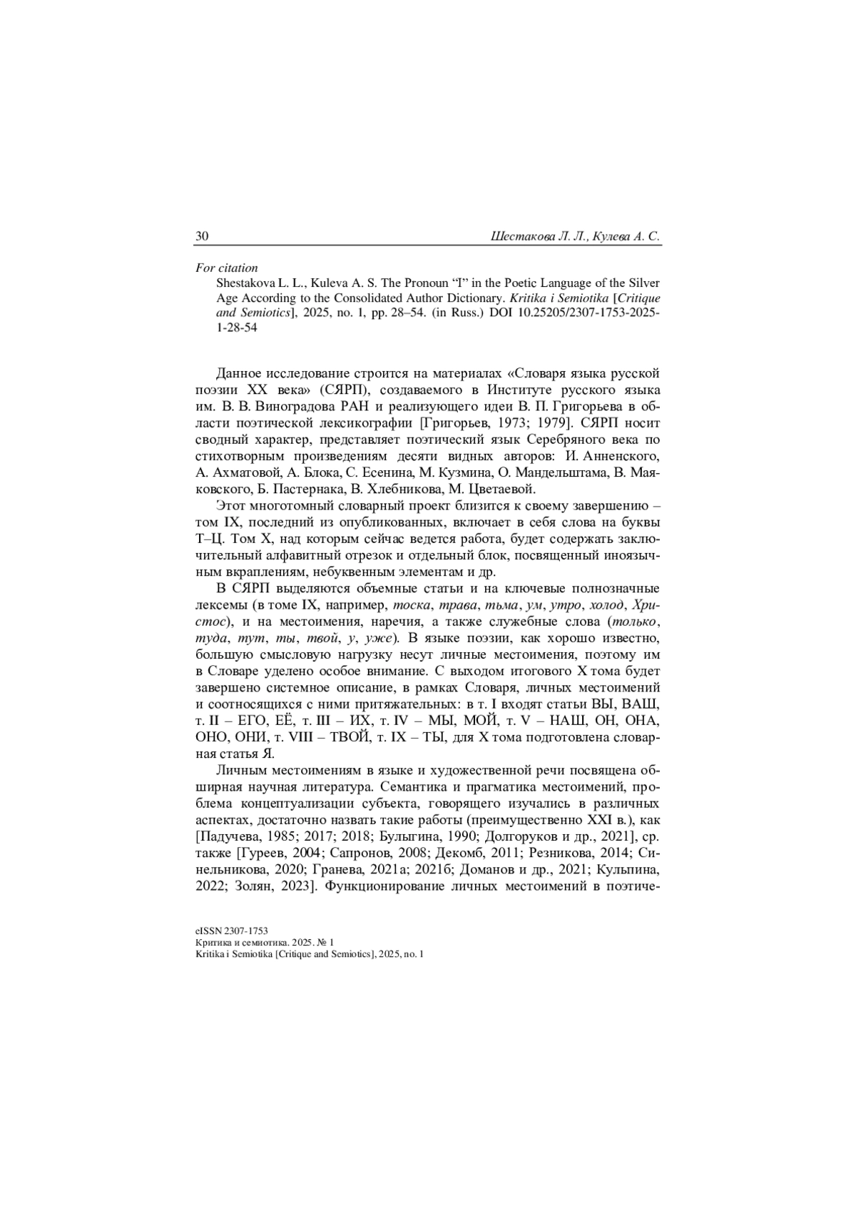 23. Кульпина В. Г. Прагматика личных местоимений в составе местоименных комплексов и диалоговых единств // Вестник РГГУ. Серия: Литературоведение. Языкознание. Культурология. 2022. № 8(1). С. 111-135. DOI: 10.28995/2686-7249-2022-8-111-135
