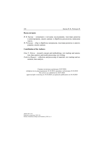 36. Litvinenko A. O., Nikolaeva Yu. V., Kibrik A. A., Fedorova O. V. “Russian Pear Chats and Stories”: Manual Annotation. Version 14.12.2018. URL: http://multidiscourse.ru.