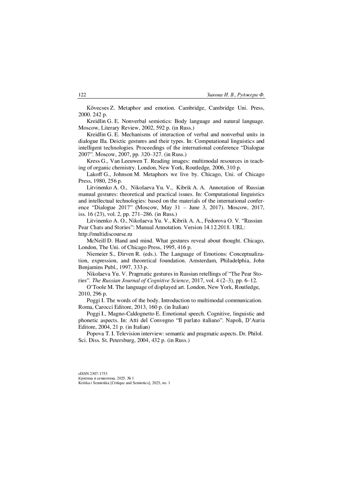 14. Савчук С. О. Что вносит жестикуляционная лингвистика в изучение дискурса // Когнитивные исследования языка. 2021. Вып. 1 (44). С. 213-220.