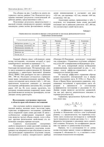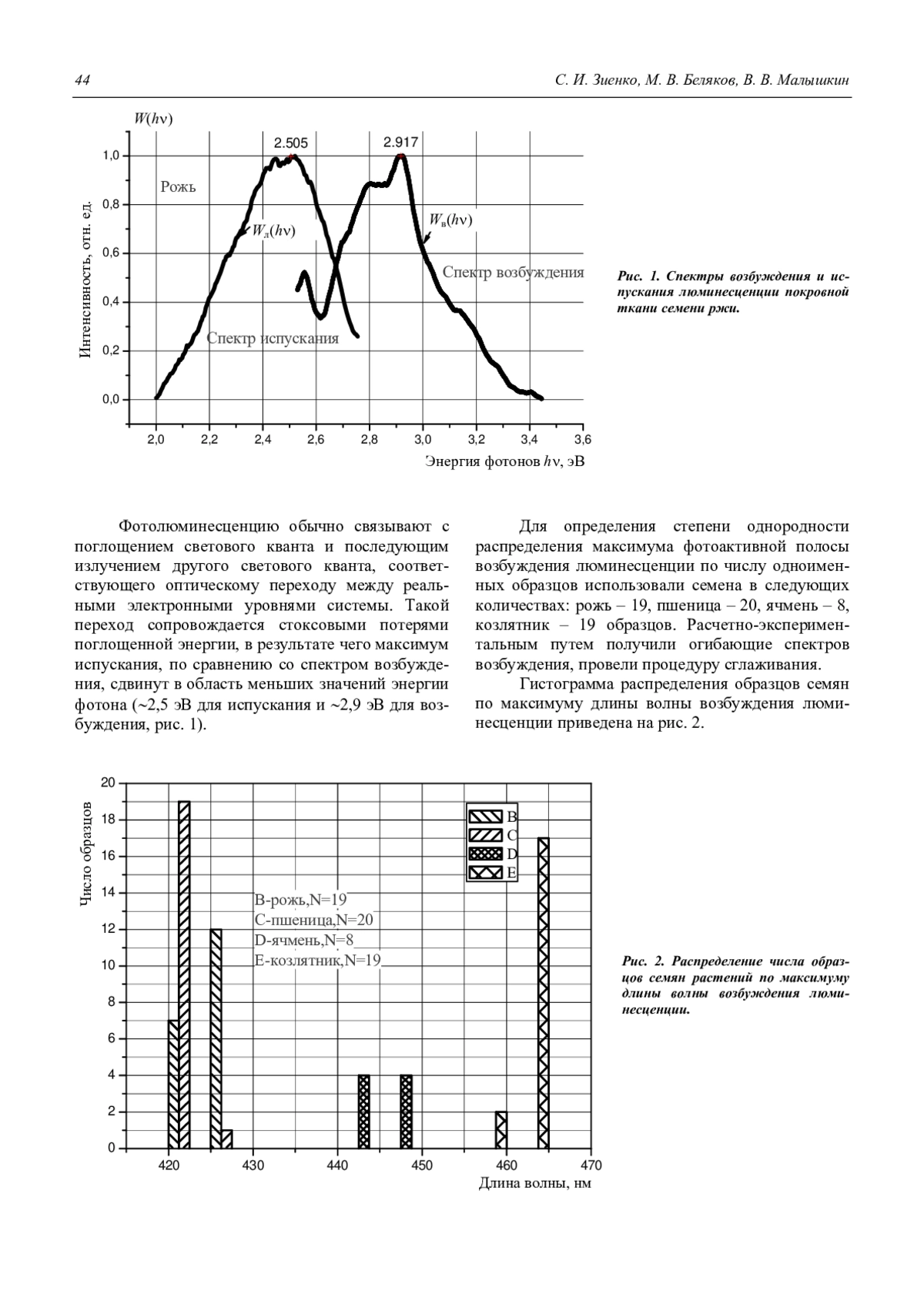Исследование спектров люминесценции покровной ткани семян растений Зиенко С. И., Беляков М. В., Малышкин В. В. 43
