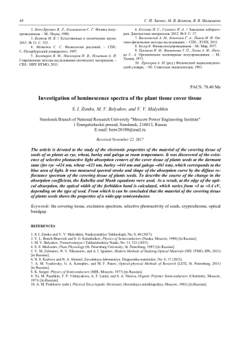 Investigation of luminescence spectra of the plant tissue cover tissue S. I. Zienko, M. V. Belyakov, and V. V. Malyshkin 43