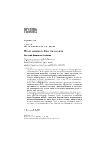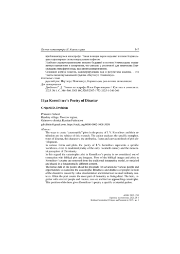 Предметом исследования являются способы выстраивания катастрофических сюжетов в поэзии И. В. Кормильцева и их атрибуция. Проведенный анализ выявил характерную метафорику, типологию бедствий, систему персонажей, способы построения катастрофического сюжета, экзистенциальный пафос.