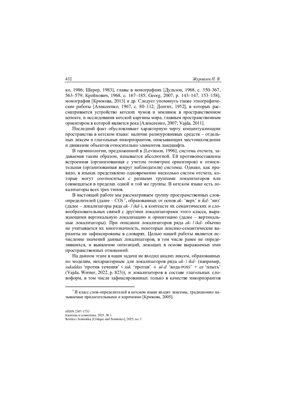 30. Шерер В. Э. О выражении пространственных отношений в кетском языке // Вопросы языкознания. 1979. № 5. С. 103-109.