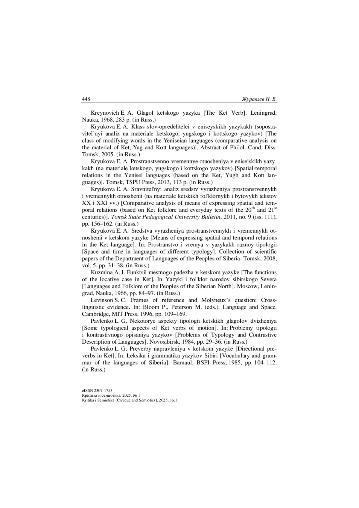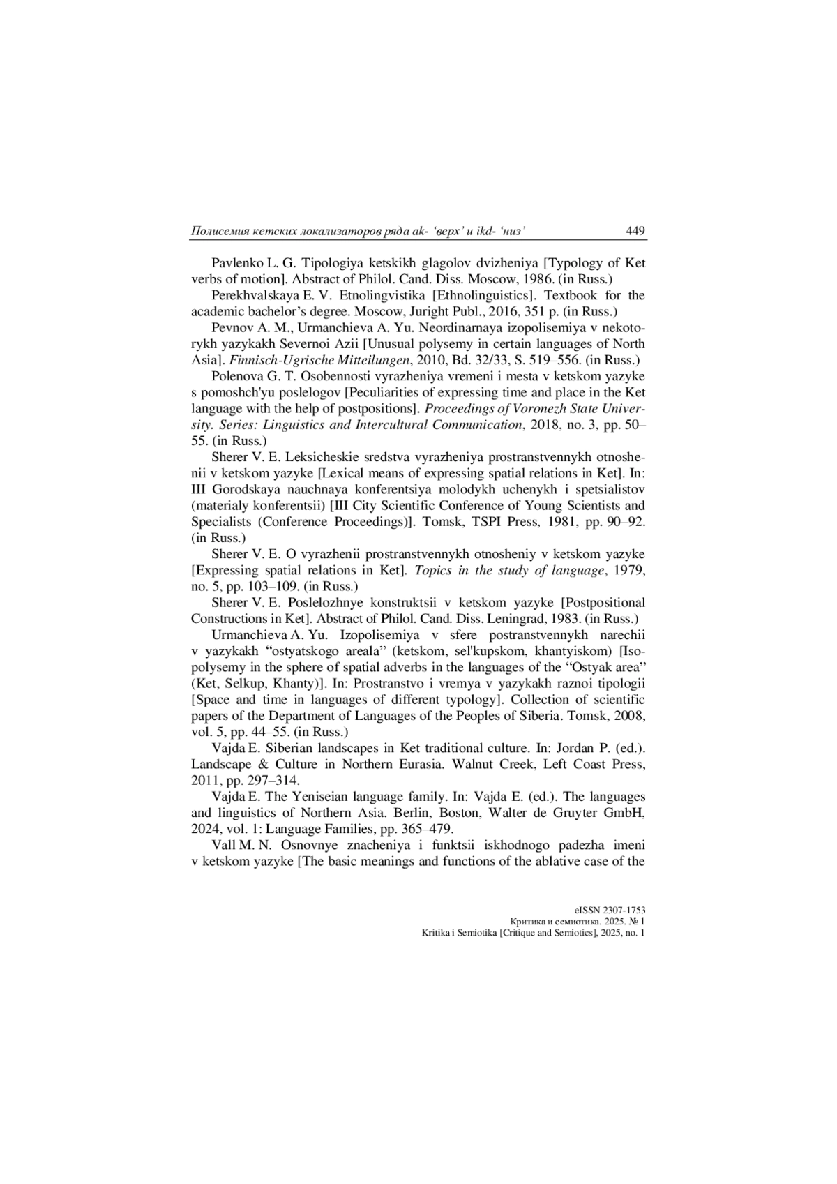 24. Павленко Л. Г. Превербы направления в кетском языке // Лексика и грамматика языков Сибири. Барнаул, 1985. С. 104-112.
