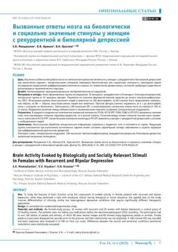Mnatsakanyan E.V., Kryukov V.V., Krasnov V.N. Modulation of evoked brain responses to biologically and socially important stimuli in women with recurrent depression. Doctor.Ru. 2021;20(9):48-53. (in Russian). DOI: 10.31550/1727-2378-2021-20-9-48-53