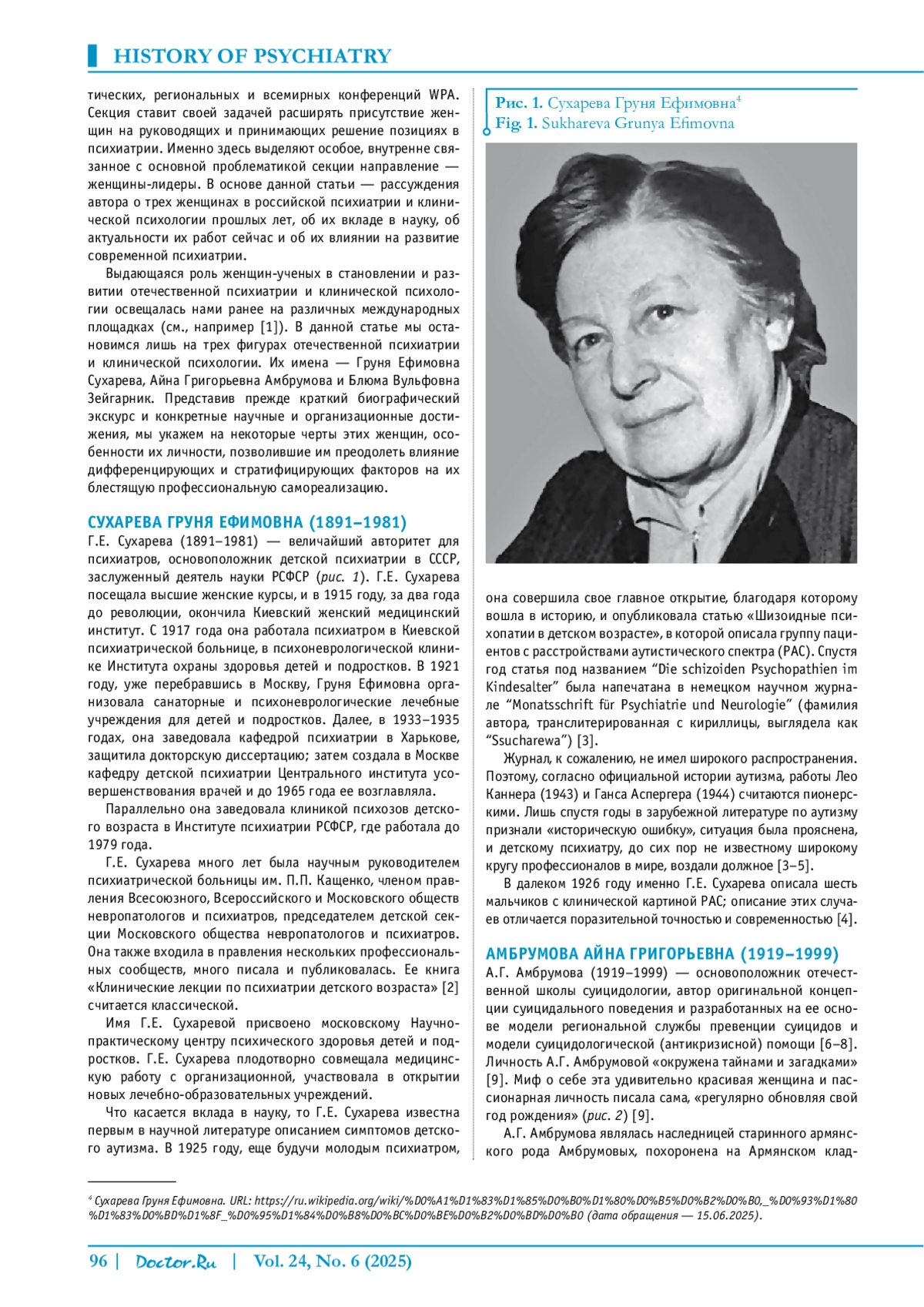 Mitrofanov A. Grunya Sukhareva: discoverer of autism, (in Russian). URL: https://www.miloserdie.ru/article/grunya-suhareva-pervootkryvatelnitsa-autizma/(дата обращения - 06.06.2025).