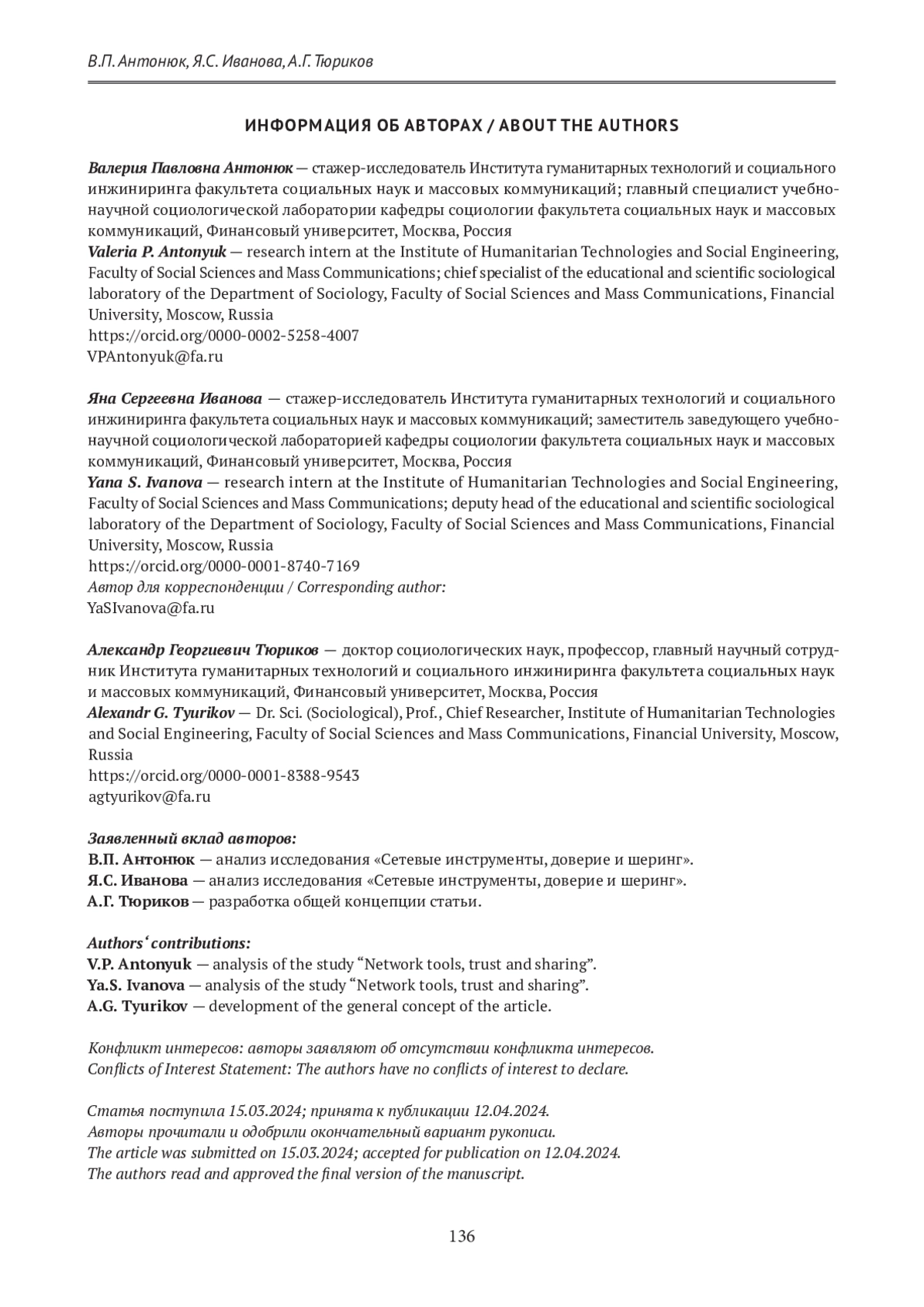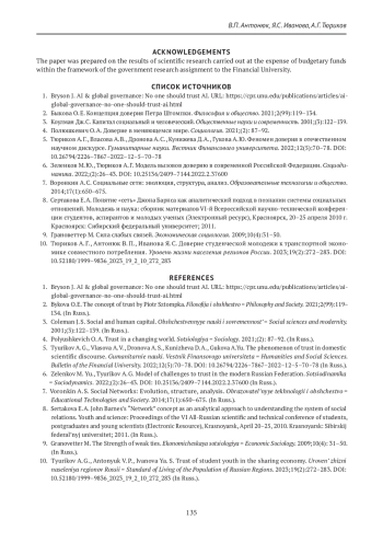 4. Полюшкевич О. А. Доверие в меняющемся мире. Социология. 2021;(2): 87-92.