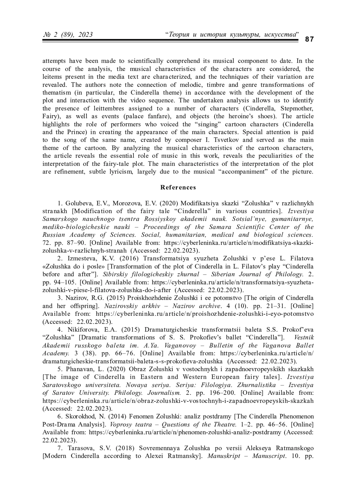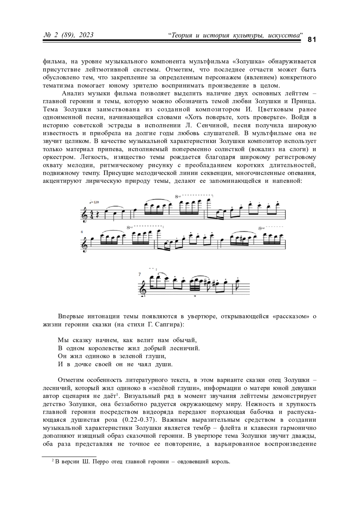 Статья: МУЗЫКА АНИМАЦИОННОГО ФИЛЬМА "ЗОЛУШКА" РЕЖИССЕРА И. АКСЕНЧУКА, КОМПОЗИТОРА И. ЦВЕТКОВА: ОСОБЕННОСТИ ТЕМАТИЗМА И ТЕМБРОВЫХ ХАРАКТЕРИСТИК ПЕРСОНАЖЕЙ (2023)