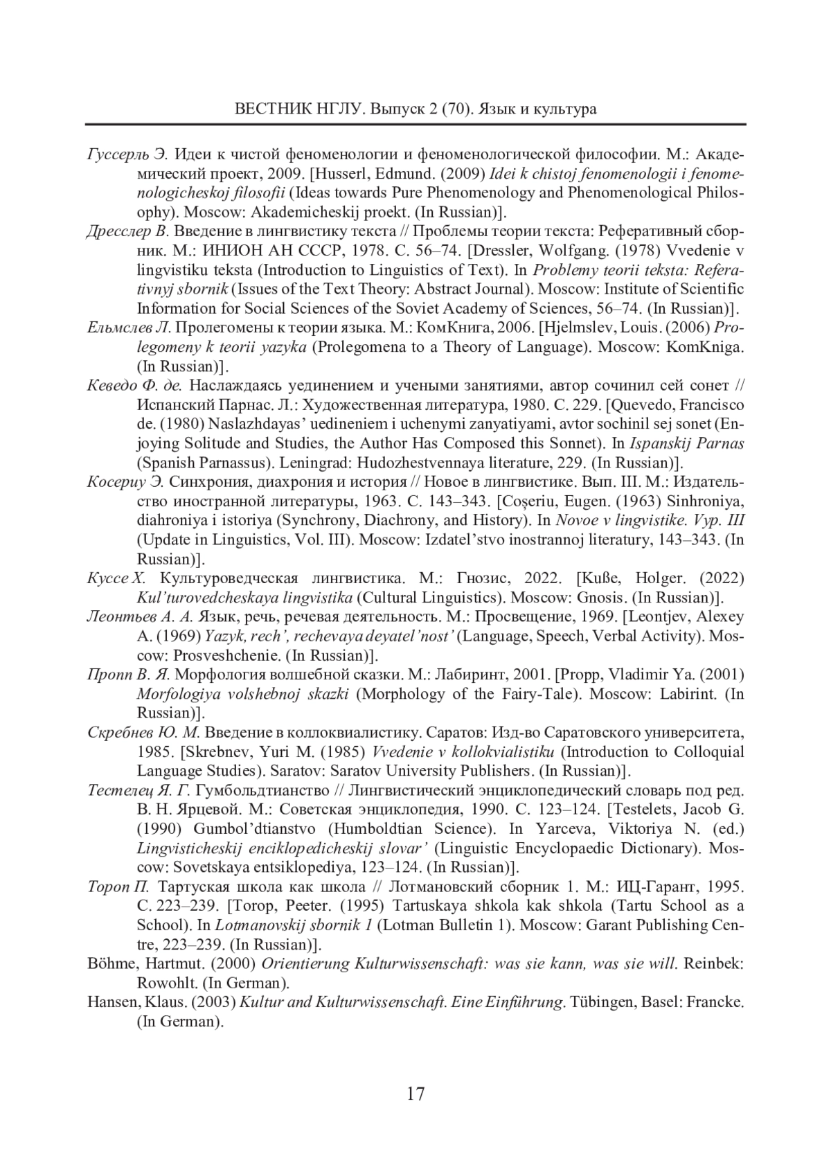 10. Куссе Х. Культуроведческая лингвистика. М.: Гнозис, 2022. EDN: UXIEZN