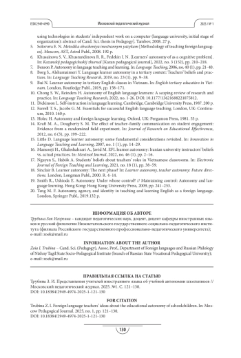 17. Nguyen S., Habók A.Students’ beliefs about teachers’ roles in Vietnamese classrooms // Electronic Journal of Foreign Teaching and Learning.2021.№18 (1).Р.38-59.