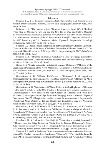13. Беляева И. А. Русские отражения истории о Белакве: Тентетников, Обломов, Лаврецкий // Два века русской классики. 2024. Т. 6, № 2. С. 82-111. DOI: 10.22455/2686-7494-2024-6-2-82-111
