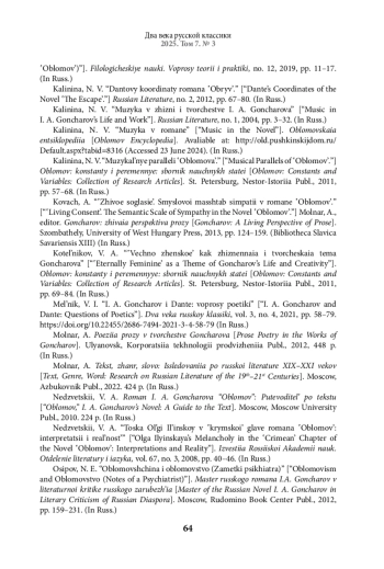 14. Беляева И. А. “Странные сближения”: Гончаров и Данте // Известия Российской академии наук. Серия литературы и языка. 2007. Т. 66. № 2. С. 23-38.